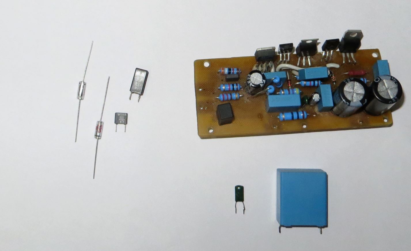 1. Заменить входные кондёры на более приличные. Есть у меня B&W 10 мКф здоровенные жёлтые бочонки. На хорошем усилке входные жёлтые кондёрчики глупо смотрятся, но на самом деле они очень неплохие и звонкие. Жаль, кончились.. Они из ламповых усилков китайских были надёрганы. А в плохом усилке синие кубики из чипа-дипа. Они мне всегда не нравились своей мутностью звука. Но других тогда, видимо, не было.