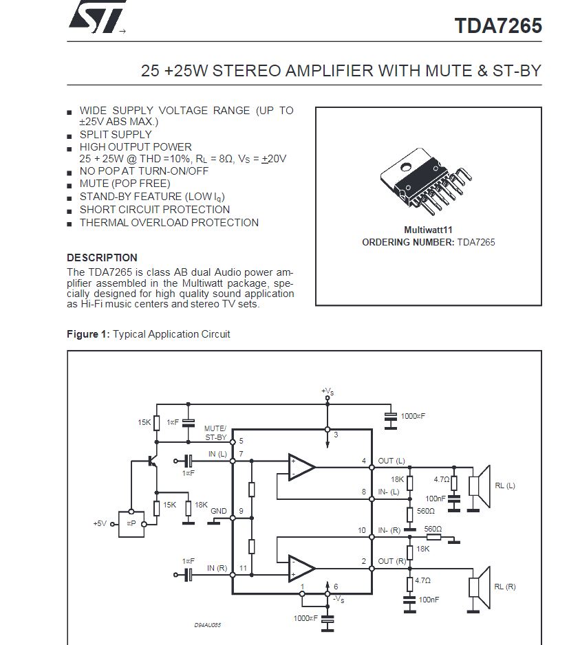 Да и по искажениям TDA7265 - только ватт до 7 играет с искажениями 0,1%, а далее у неё растут искажения до 10% THD....Хотя написано то может играть до 25 ватт на канал... то есть два по 25 ватт.