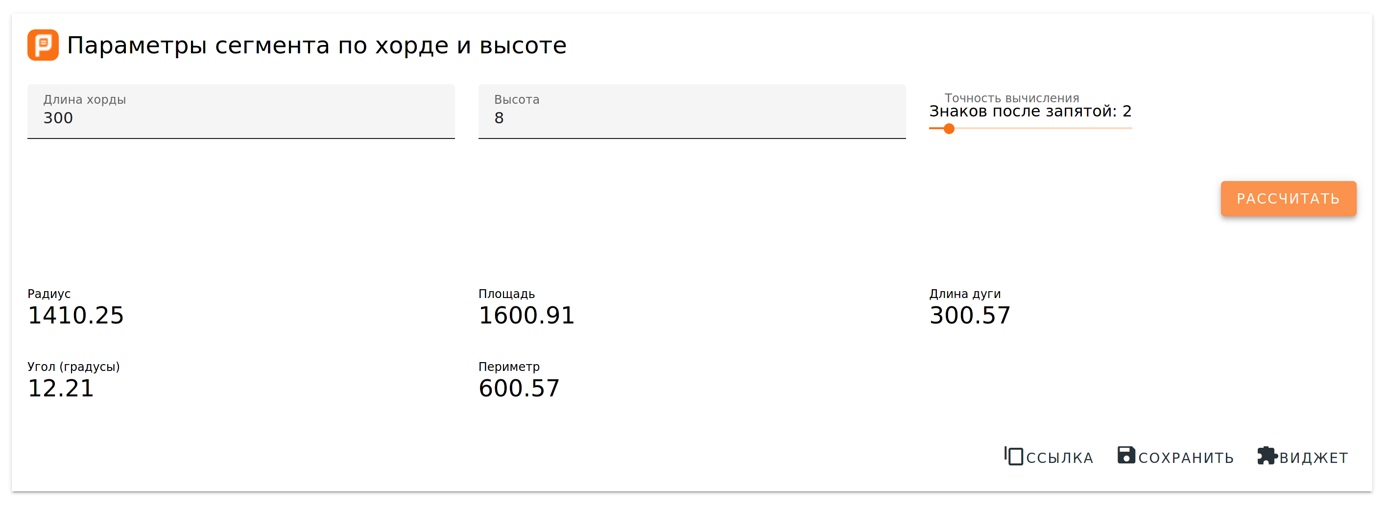 Попробуем рассчитать высоту прогиба при заданной длине дуги 300мм + 0.6мм и длине хорды 300мм: