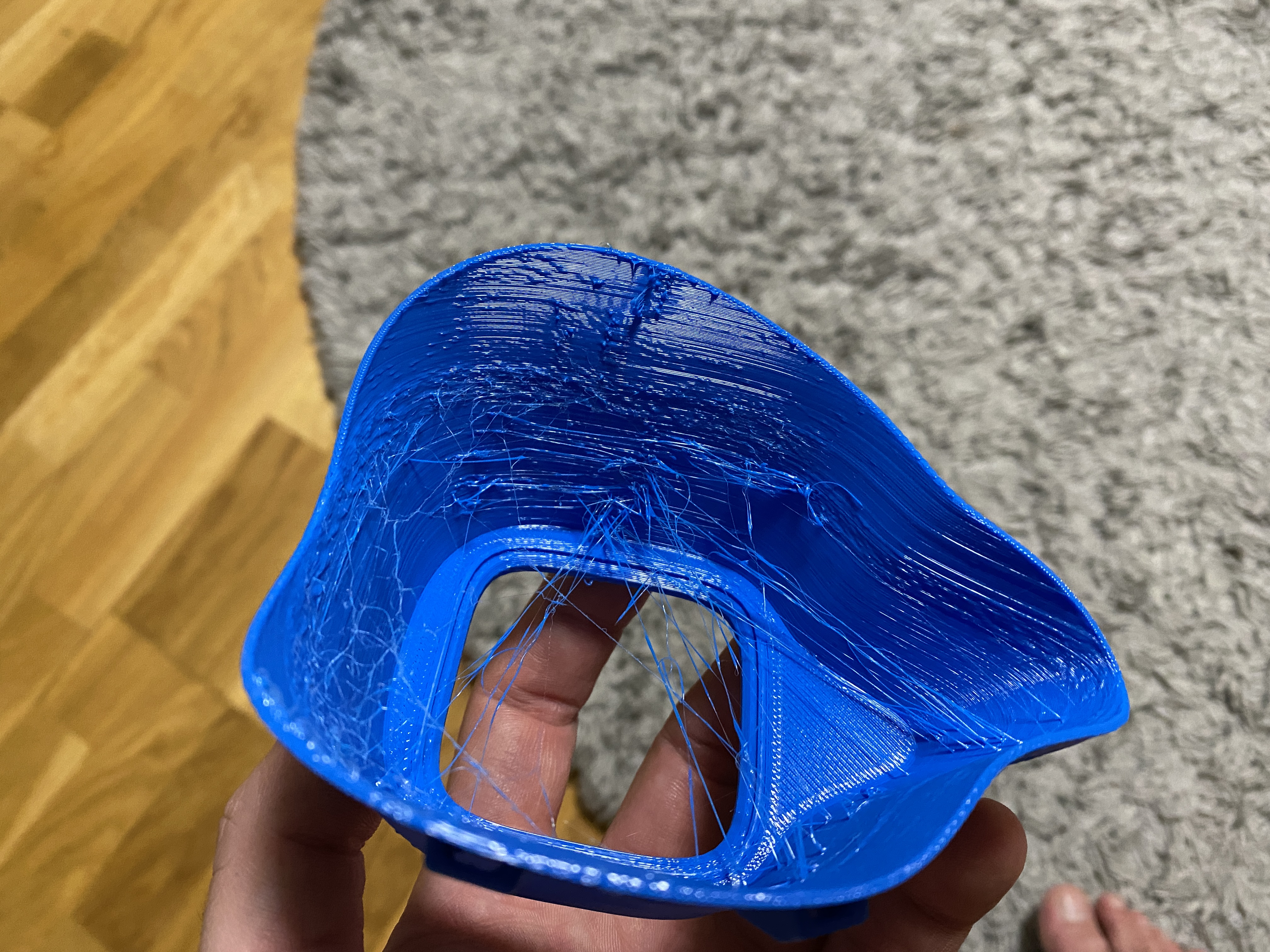 Сегодня поднял температуру до 210С и ретракты с комбингом 1,5мм на скорости 20мм/с + снизил скорость для печати внешних стенок до 30мм/с. Печать лучше, но не удовлетворительная…