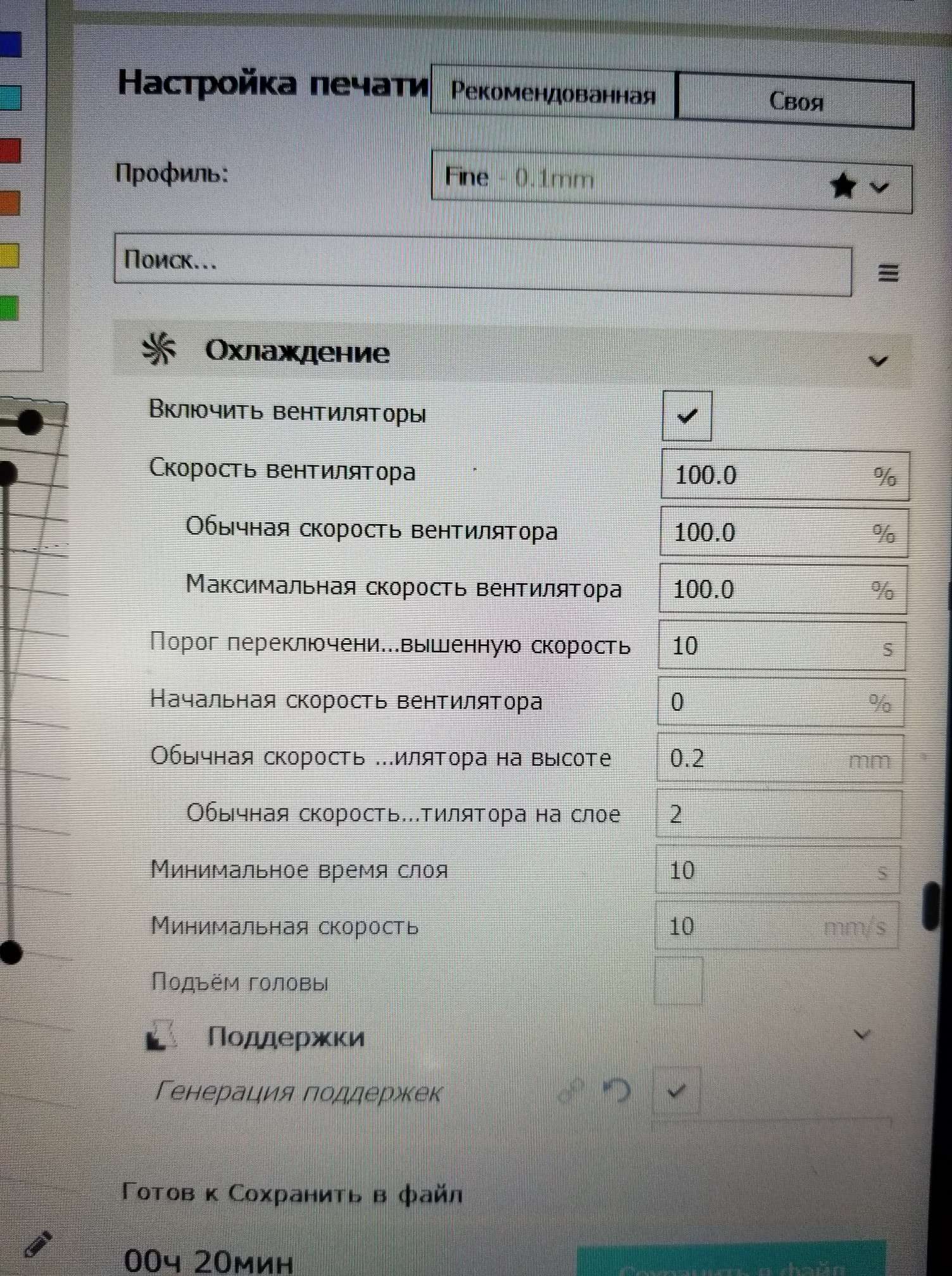 Vlad1913, Параметры печати где? Тип пластика, температуры сопла и стола, обороты обдува, скорость печати...