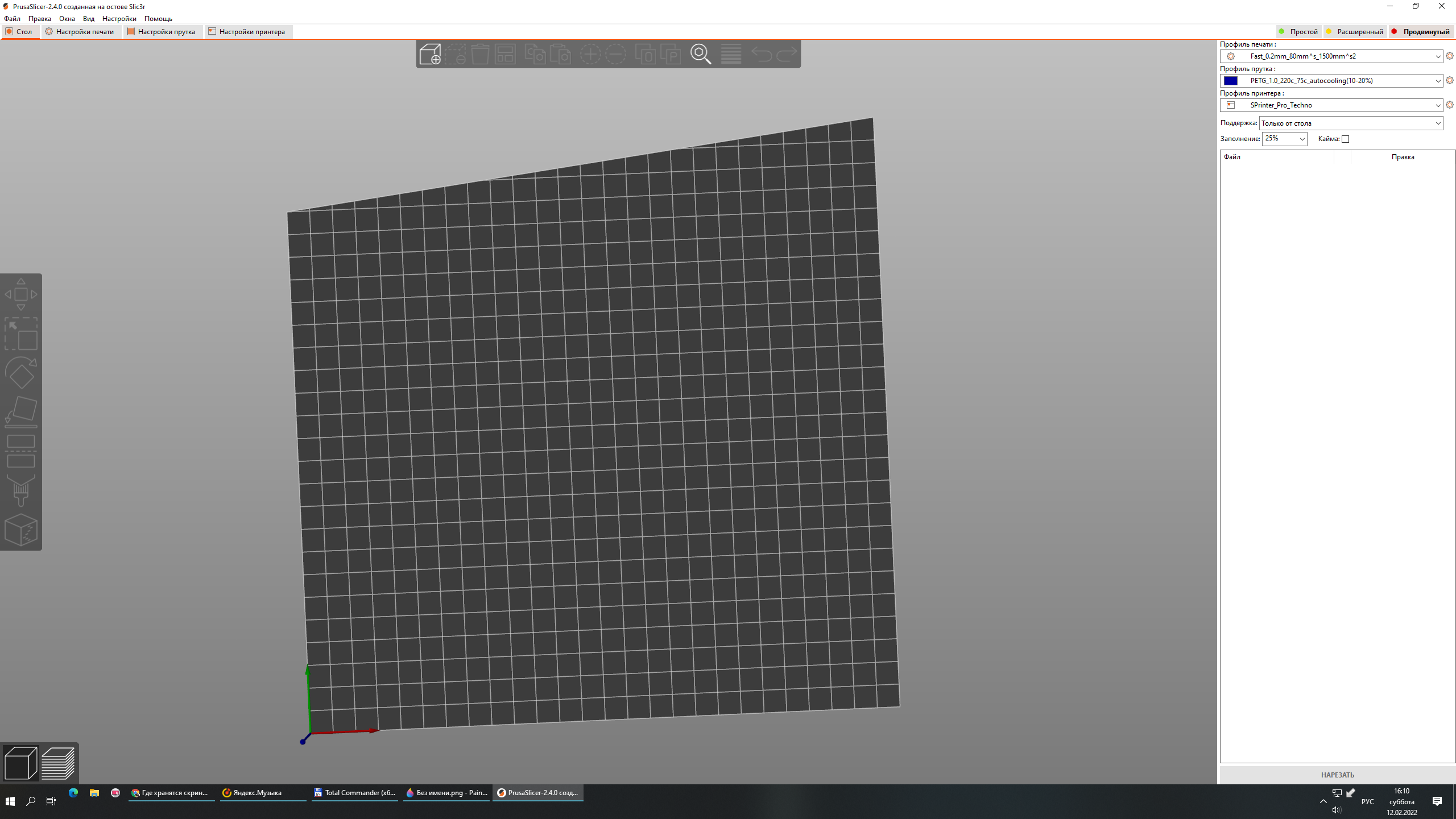 Добрый день. При выборе профиля PrusaSlicer стол на экоране кривой