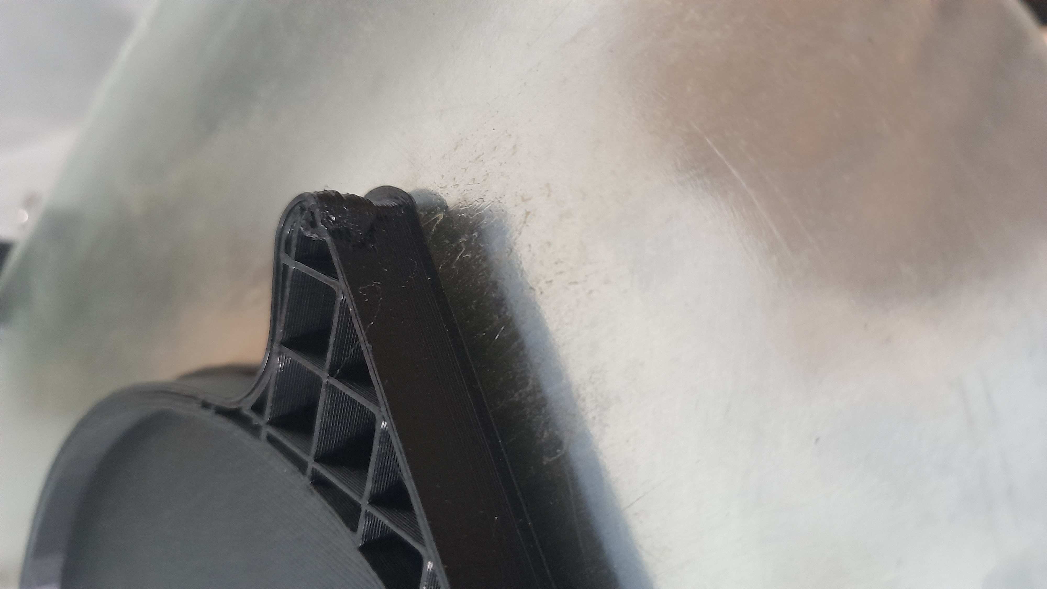 В общем сглазил, не знаю или куру или 3D принтер. вчерашняя деталь которая На печаталась нормально напечаталась с одним дефектом, небольшая недо экструзия там где начинается слой, я загрузил вчерашний (который нормально на печатался) файл проекта подправил температуру сделал меньше на 5 градусов поставил на печать и опять вылез вчерашний косяк, остановка в конце каждого слоя на 4 секунды. Только теперь он останавливается с первых слоев может и вчера останавливался а я как то не заметил,просто следующий слой маскирует эту остановку когда печатается дно. А когда начинает печататься стена на тут явно видно наплыв. Сейчас поставил на печать 6 штук мелких деталей с первых слоёв видно что печатает нормально без остановок.