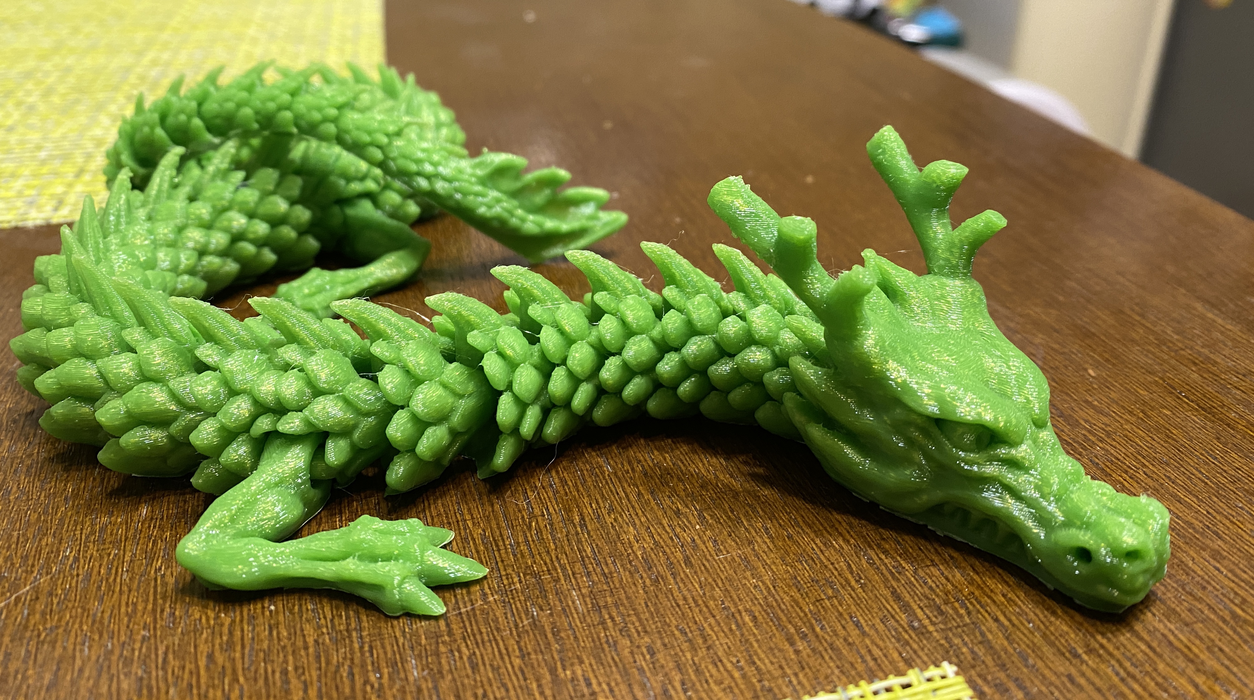 Распечатал для детишек дракошу, весь на шарнирах. Заодно проверил свой скилл печати на принтере, а Получилось очень даже ничего: