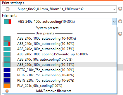 под каждый пластик отдельный профиль настроен и сохранён в отдельной папке на компе
