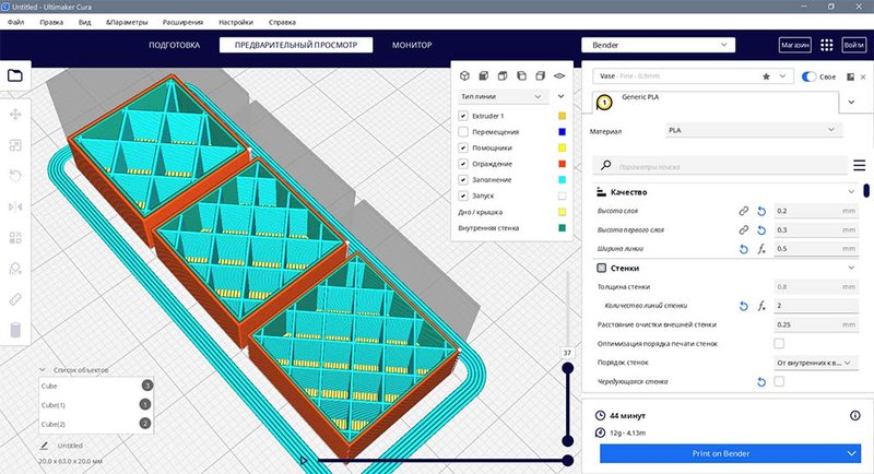 Вот три кубика с шириной линии 0,4; 0,5 и 0,6.