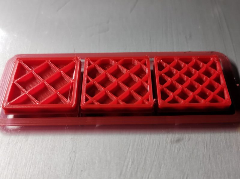 А это три кубика из примера выше с разной шириной линии(читай диаметром сопла для Куры 15) и "рыхлой структурой" напечатанных соплом 0,5.