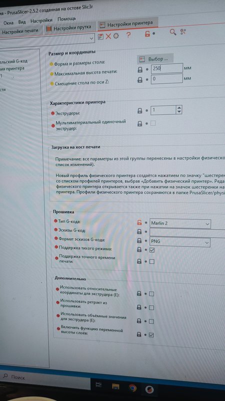 прошивка у меня на принтере стоит марлин , в слайдере два варианта Марина я пробовал оба . Принтер я выбираю свой . тип g-кода я не менял. а какой нужен?