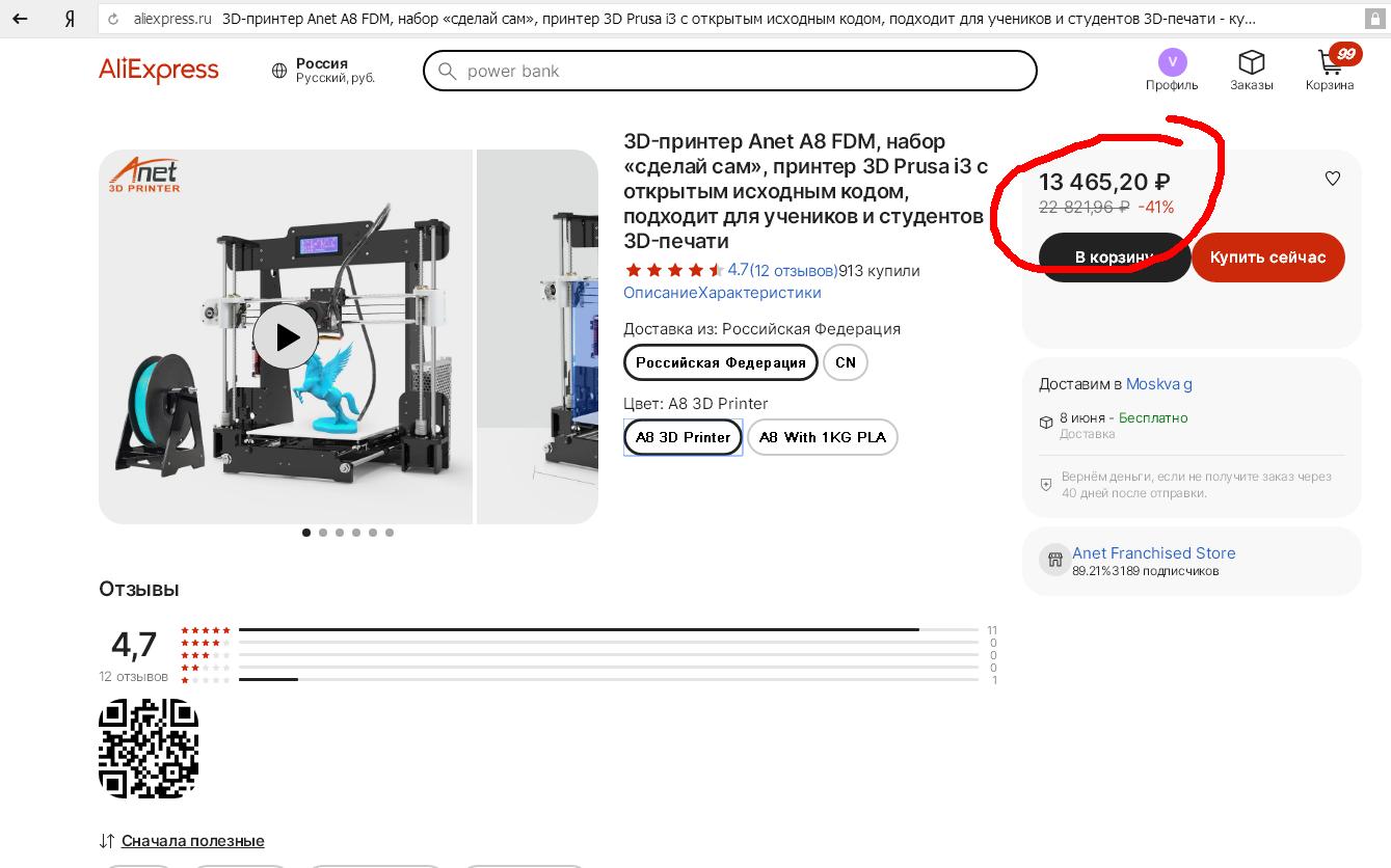 Так у него моторы самые дешёвые из того, что есть на Али - 24BYJ28, с встроенным редуктором 1:63. Пластиковый редуктор в них сам по себе довольно сильно люфтит. И скорость вращения на выходном валу - всего 1 оборот аж за 4 секунды. В общем печаль печальная. Ни качества ни скорости. Теперь понятно, почему на печать мелкой детали у топикстартера аж 4 часа ушло. Хотя на ось У, судя по фото, можно поставить Нема-17, вроде как раз под него выштамповка сделана. На оси У вроде тоже просматриваются отверстия для крепления Нема-17 (на фото с Али), но не уверен. А по Z можно и BYJ оставить - там люфт весом портала выбирается. Увидеть бы ещё, что и как на экструдере стоит. Если тот же BYJ. то долго он там не проживёт - пластиковые шестерни в редукторе съест под нагрузкой. У моего первого самосборного принтера именно такой мотор на экструдере стоял первую неделю. Первый экземпляр съело дня за три - шестерни поплыли из-за перегрева. Второй экземпляр с внешним обдувом простоял дольше, но смог осилить только китайский пластик. Более жёсткий филамент от ФД-Пласт он вообще отказался проталкивать.Так-то эти моторчики были разработаны для того, чтобы в кондиционерах шторкой, направляющей поток, качать, а там большой мощи и скорости не требуется, и на огромные люфты плевать. Так что тоже менять на Нема-17. Итого минимум 3 мотора на сумму около 2-х тыров (или все 5 на 3 тыра). Но тогда, если поставить ещё и дисплей с энкодером, то цена этого аппарата станет для него чрезмерной. Ещё чуть добавить, и по цене уже вполне выходит рабочая лошадка Анет-8 с большим подогреваемым столом. Или Анет ET4X-R - на роликах, но из металла и с сенсорным экраном.