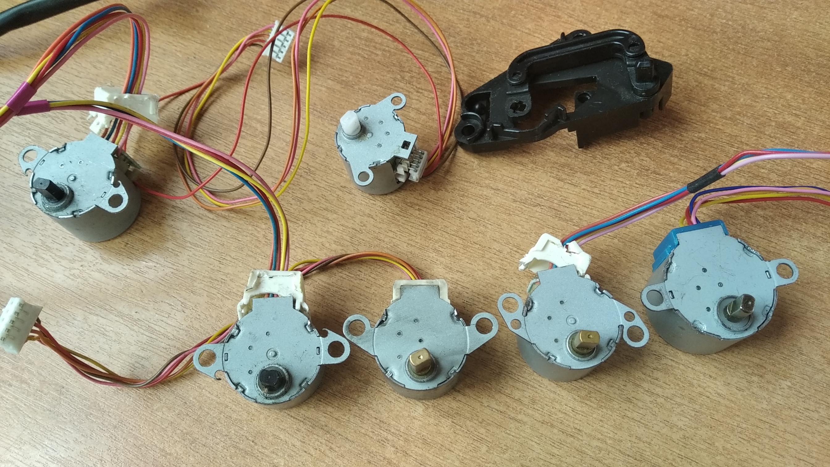 Бывает, и выходной вал смещён от оси симметрии по часовой или против часовой стрелки. Но они все с редукторами, даже тот мелкий, что на моём фото во втором ряду. Рядом лежащая чёрная пластиковая деталь - как раз часть привода заслонки кондиционера, откуда некоторые из этих моторов и были сняты. Они для этого и разрабатывались в своё время.