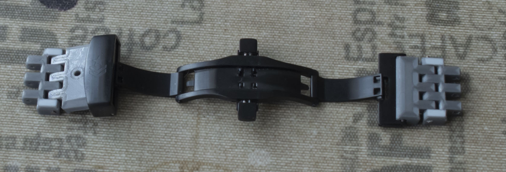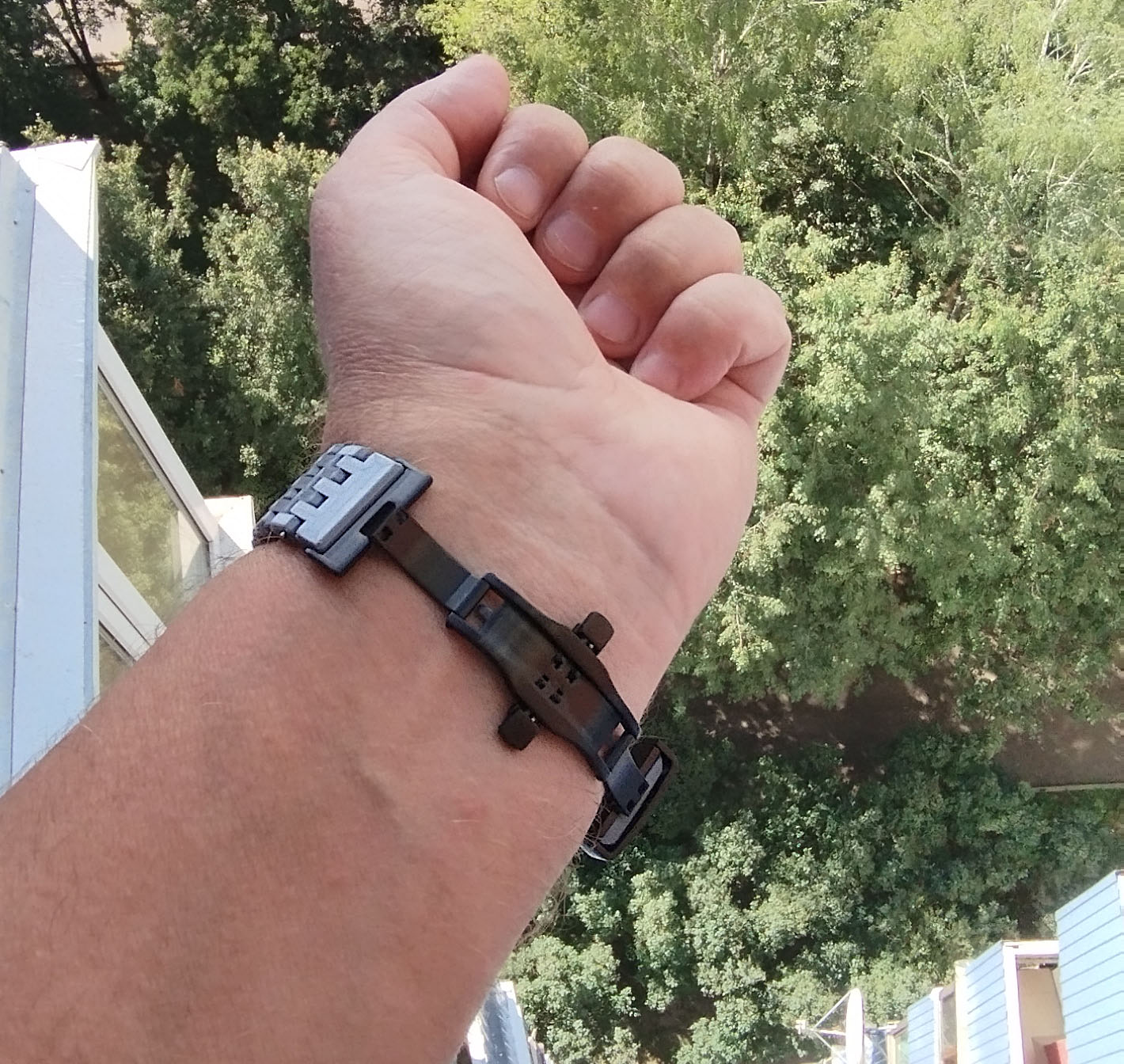 Такое не каждый китайский ремешок выдерживает :) Классная идея. Не понял только принцип защелки и почему одна деталь другим цветом в ней? Металл?