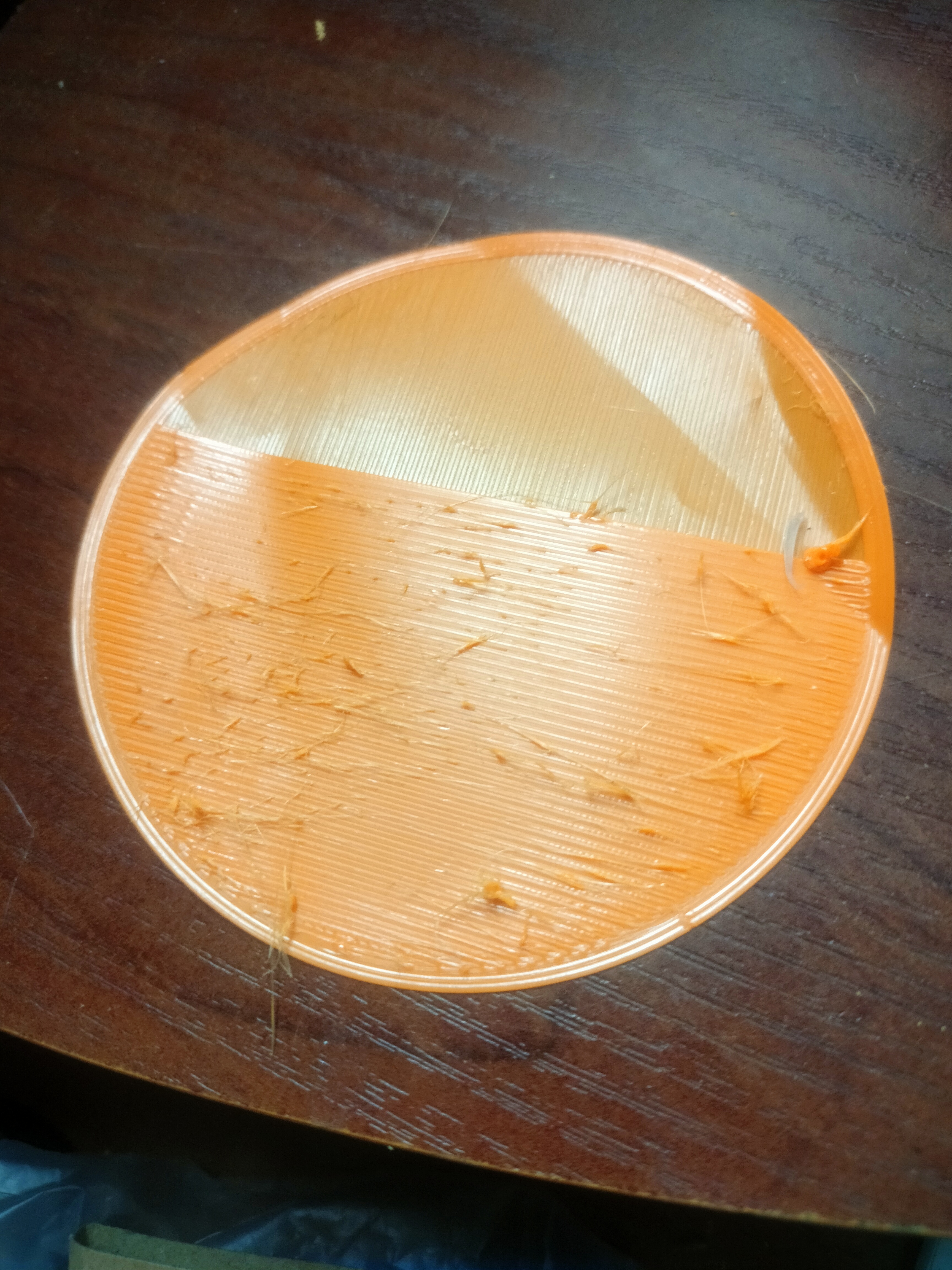 В общем, недавно приобрел себе принтер, Ender 3 Neo, полностью настроил, все работало и радовало меня, но сейчас обнаружил что при печати больших плоских поверхностей, при повороте принтер оставляет длинные нити, которые потом выглядят крайне плохо. Фотографию проблемы оставлю во вложении, прошу совета как это можно исправить, перепробовал многое, пока ничего не помогло. Просьба не кидаться тапками если не сделал какие то очевидные вещи.