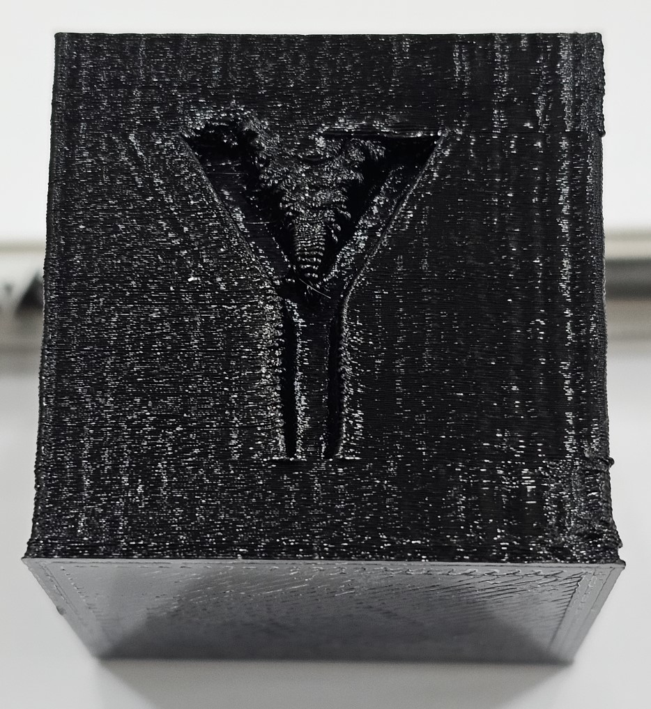 на стороне Х плюс ко всему еще и явный эффект эхо. на стороне Y буква смазана. сторона Z, сама буква вроде нормально пропечаталась, но поверхость последнего слоя как будто провалена в некоторых местах, там я кстати добавил в слайсере эффект разглаживания последнего слоя (типа как утюгом) без подачи пластика....