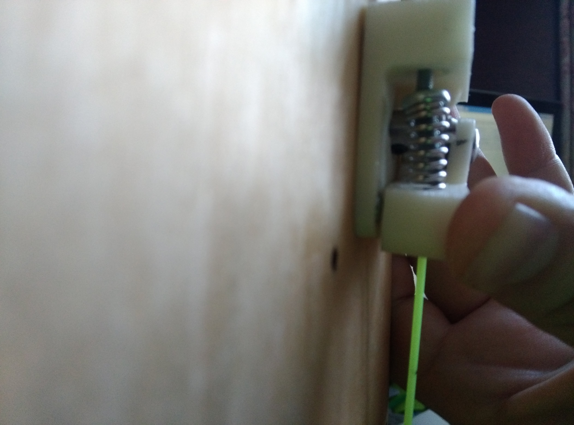 В таком случае я бы наверно посоветовал сделать прогиб пружины в обратную сторону. Попробуйте поварьировать и сделать так что бы пружина отгибалась не к вам а в сторону принтера.