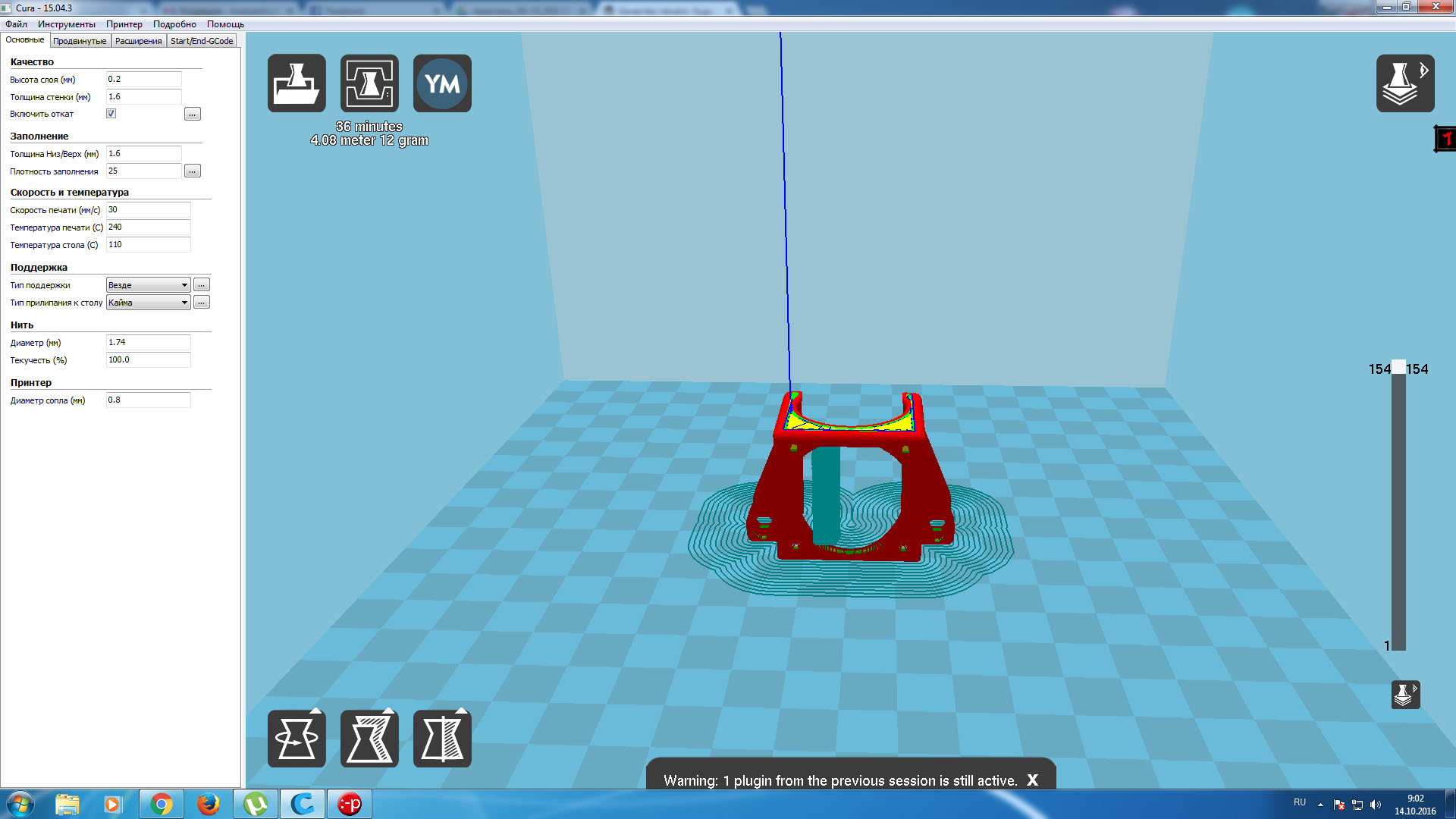 На первых слоях получается как бы юбка. Куда копать? Слой 0,3 сопло 0,4. Использую кайму. Скорость печати 50, температура 235/110. Тут вроде ещё присутствует небольшая переэкструзия, может она повлиять на юбку?