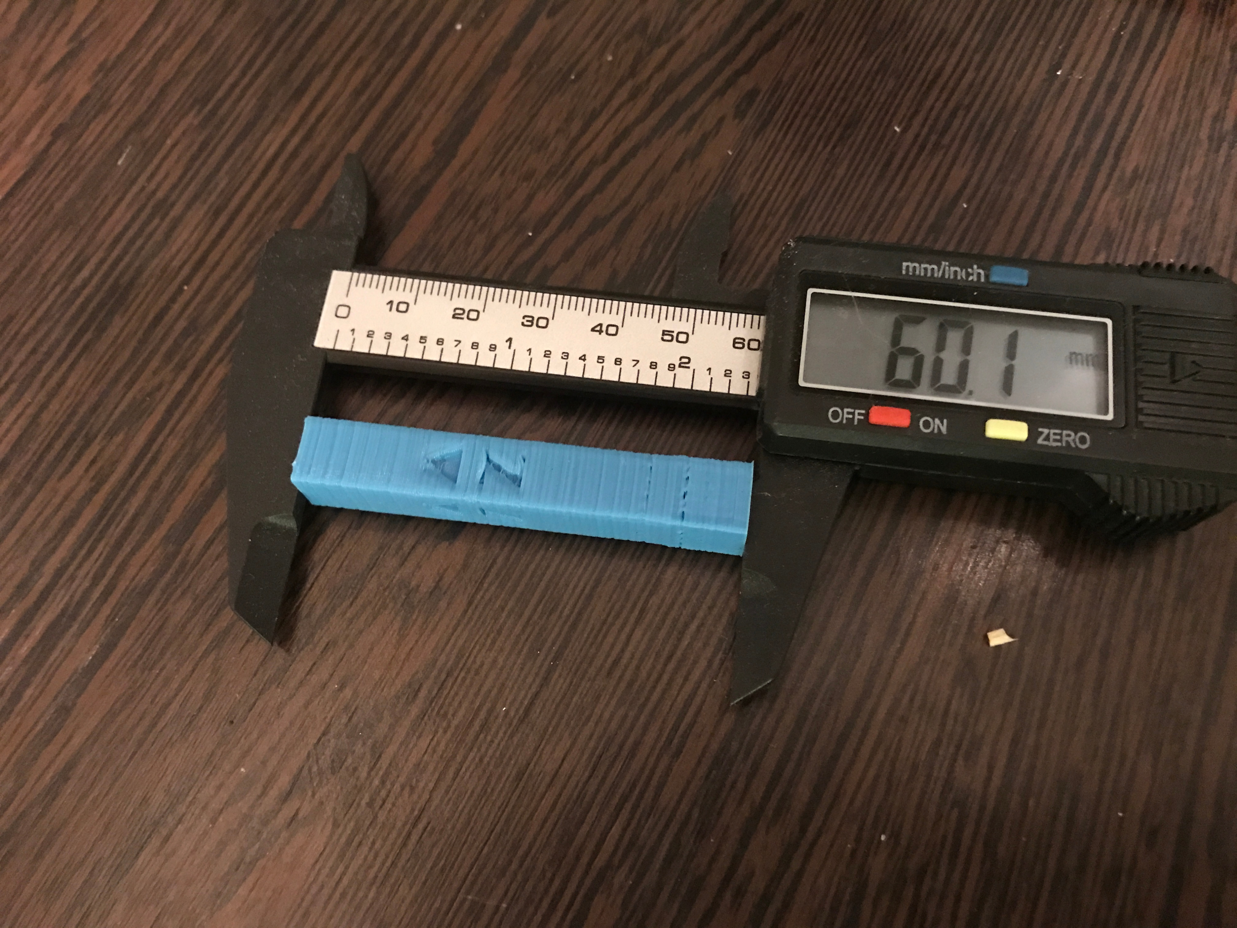 ПС: результат первой печати (недоэкструзия и недообдув - недонастроенный слайсер). С учетом погрешности пластикового штангенциркуля - идеальный результат для бытового принтера.