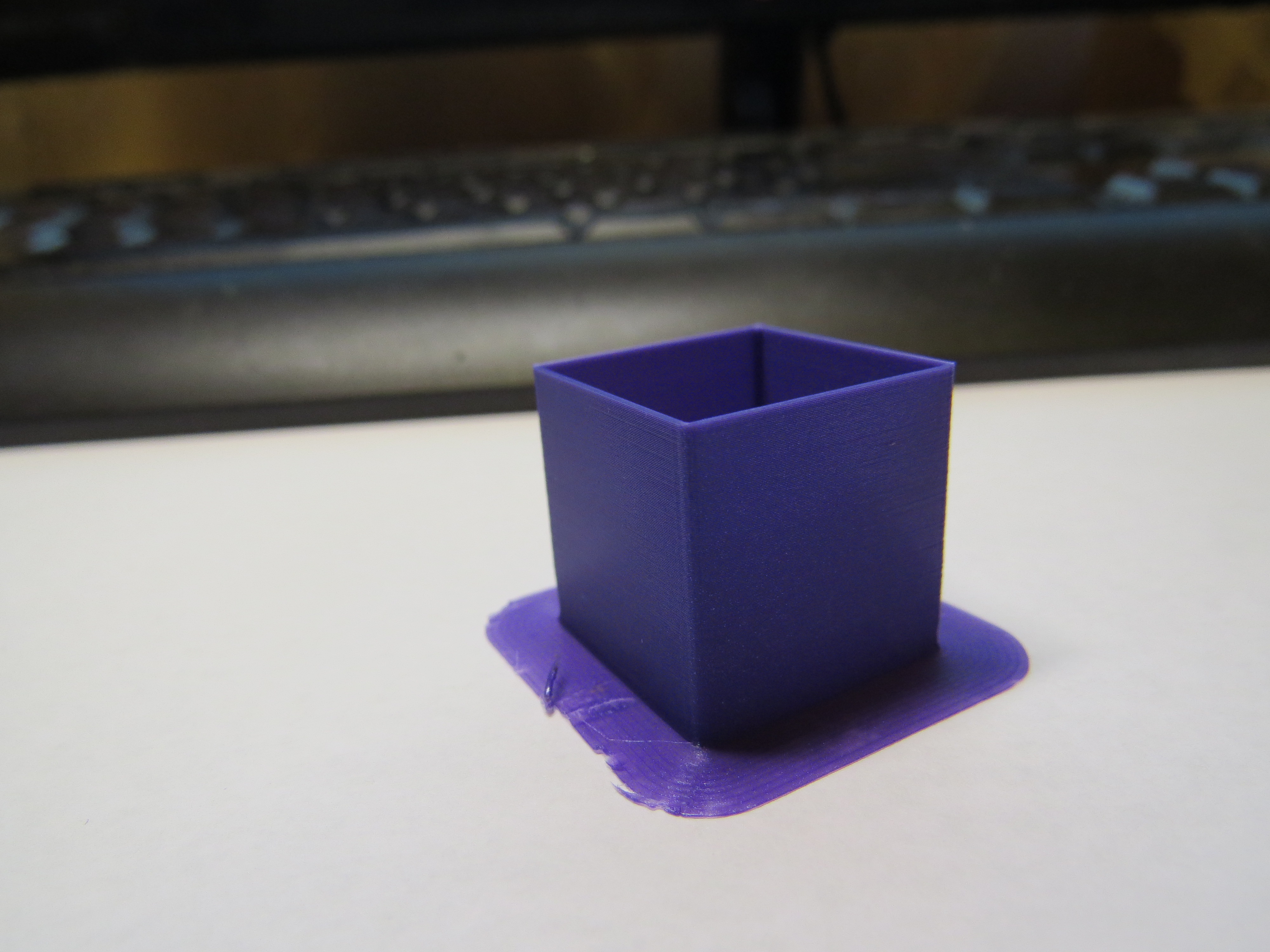 После печати дракона распечатал кубик из того же пластика (20х20, слой 0.1, скорость 35)