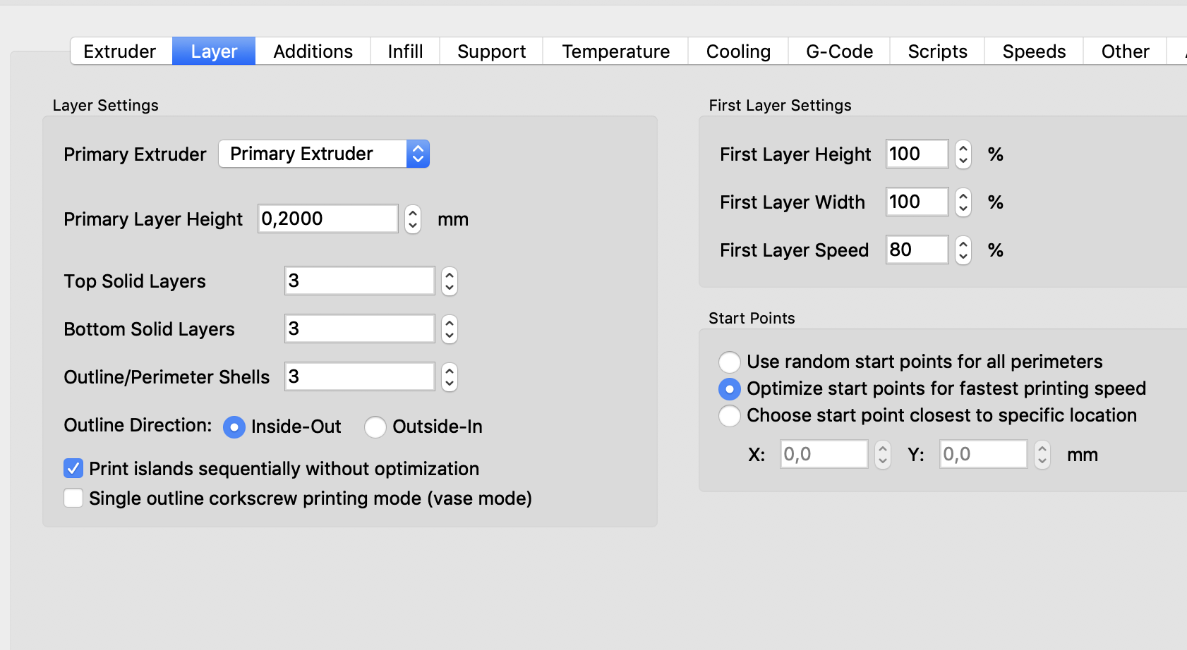 Здравствуйте, я долго мучась с настройками. Не могу подобрать такие, чтоб печатать хотяб на скорости 60мм/сек без дефектов, поэтому прошу кого-нибудь, скинуть профиль для Cura, PrusaSliser или Simplify.