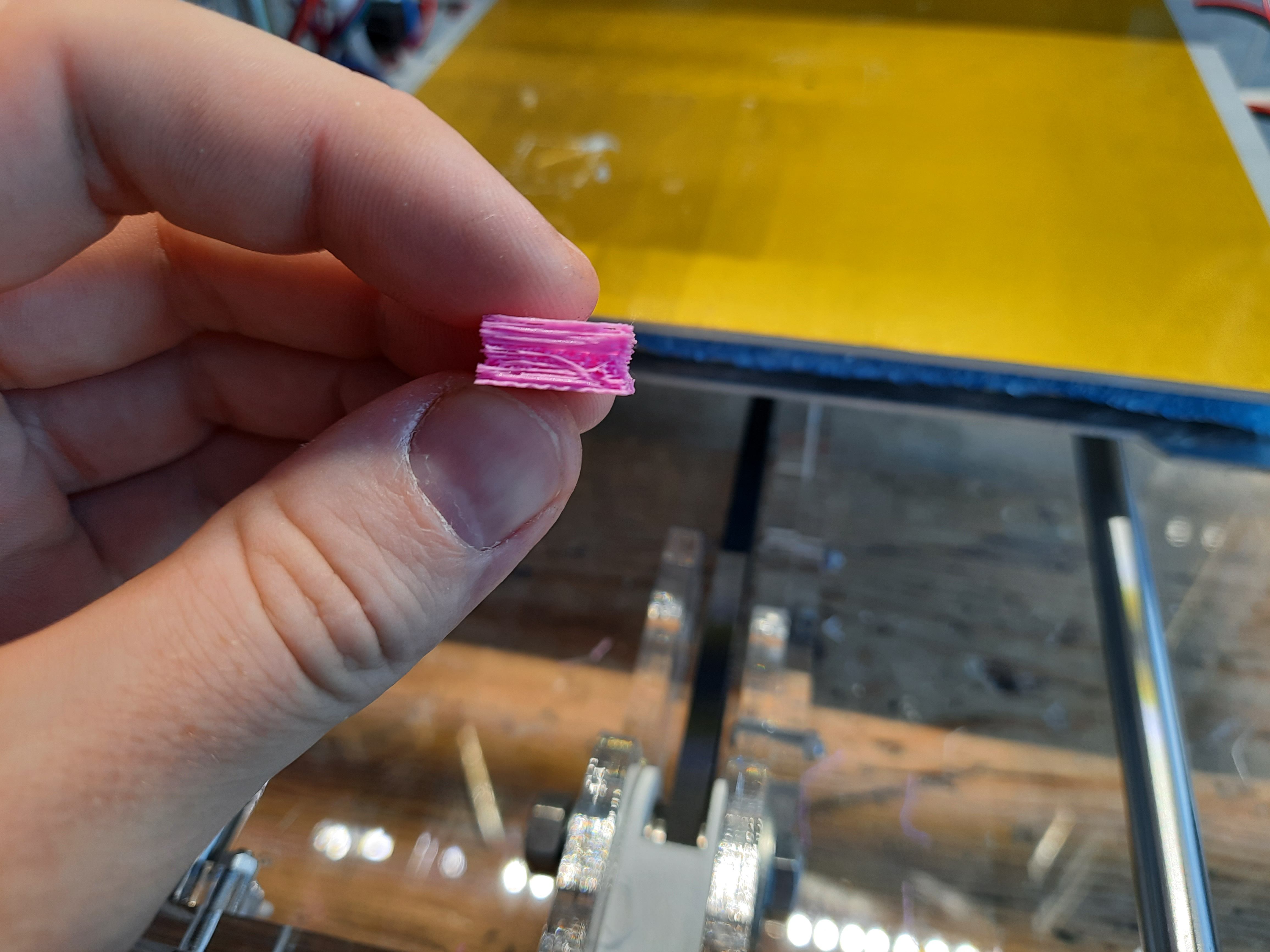 3. Проверить калибровку первого слоя. Способы калибровки ноля по Z есть разные, при помощи шупов, листа бумаги, просто на глаз. Нужно добиться, чтоб при Z=0 сопло касалось стола без зазора, но не давило на него. ДЛя начала погрешность может быть в пределах одной десятой, потом с опытом все будет настраиваться на глаз и весьма точно ;)