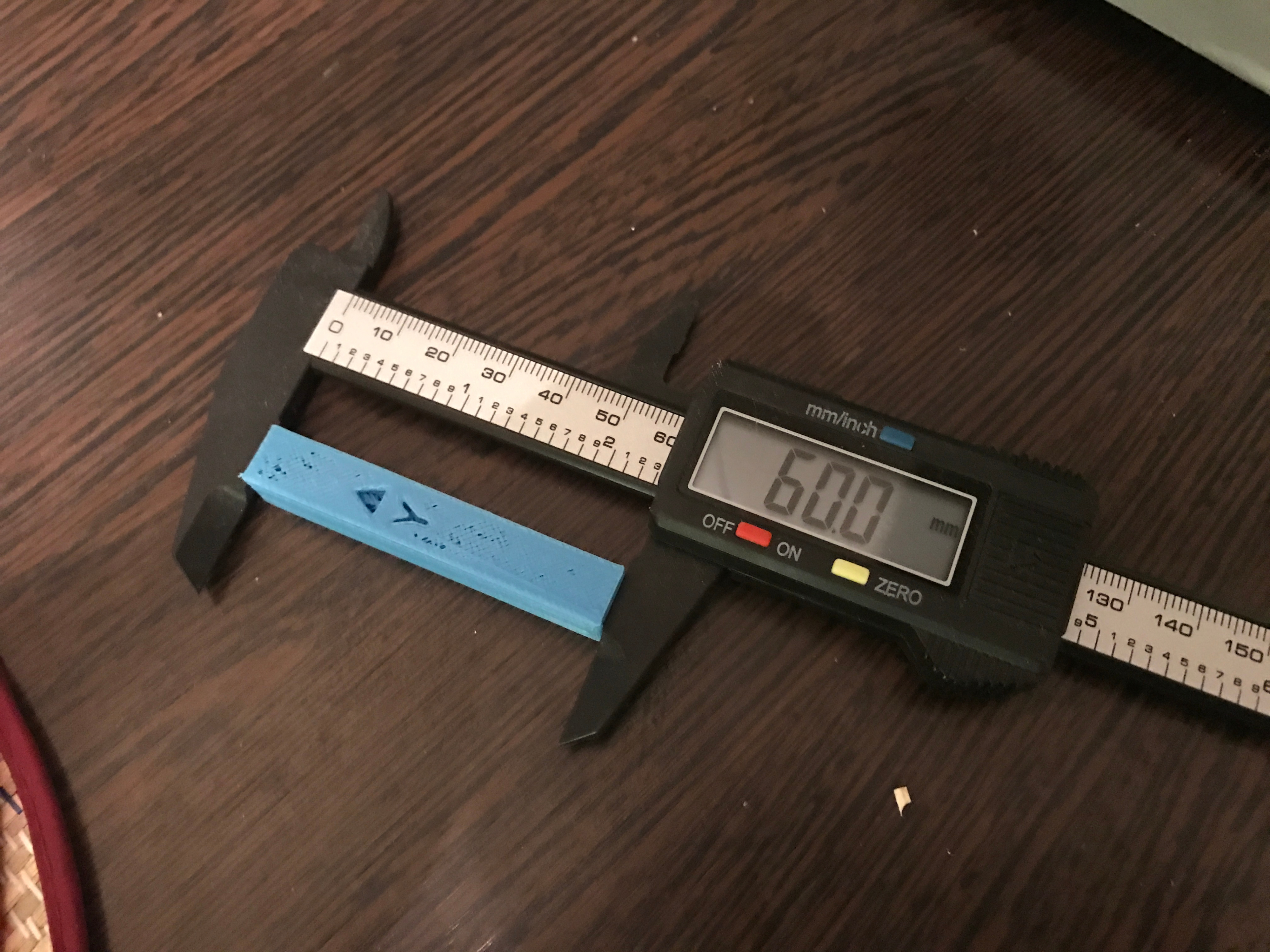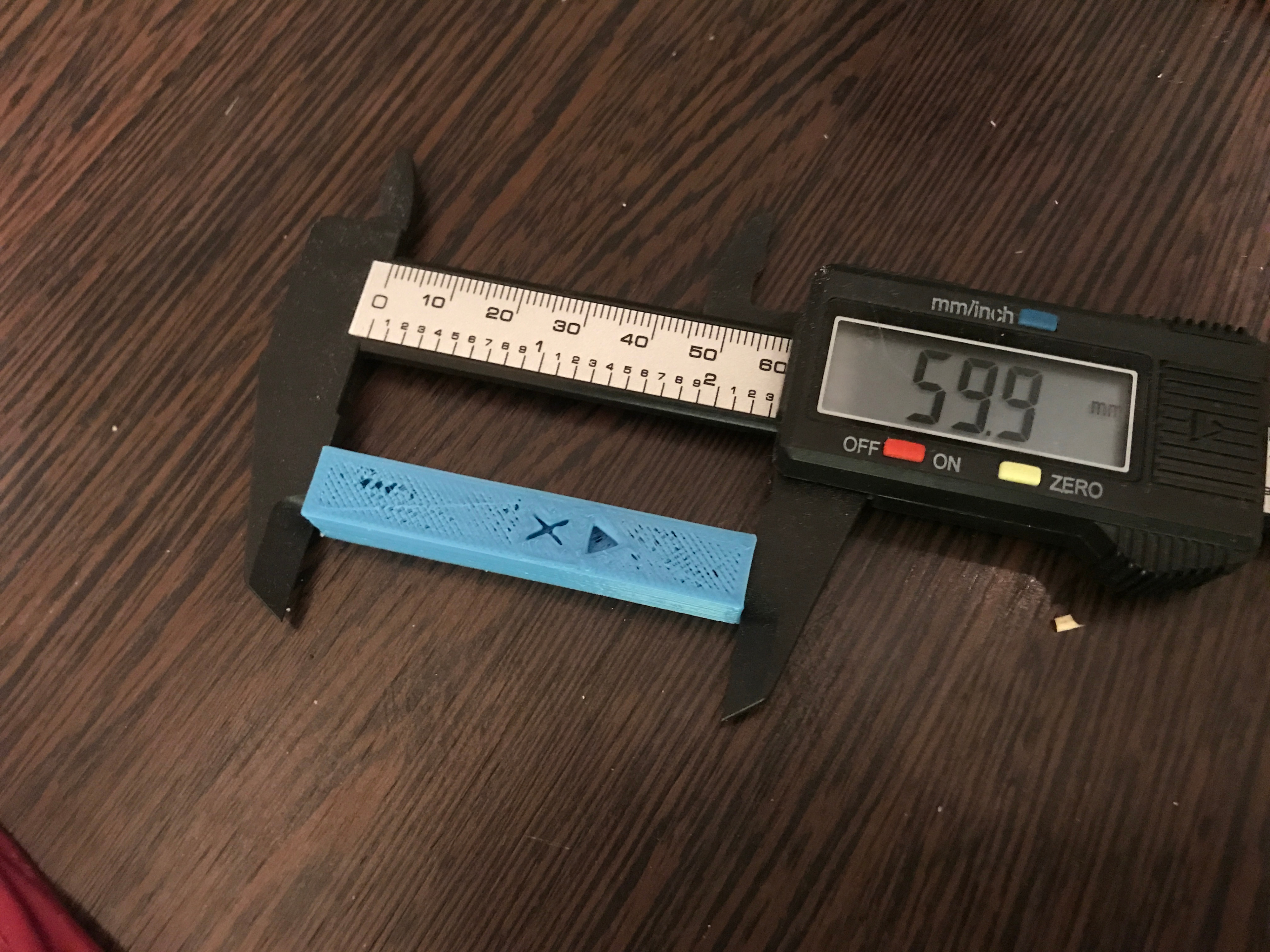 ПС: результат первой печати (недоэкструзия и недообдув - недонастроенный слайсер). С учетом погрешности пластикового штангенциркуля - идеальный результат для бытового принтера.