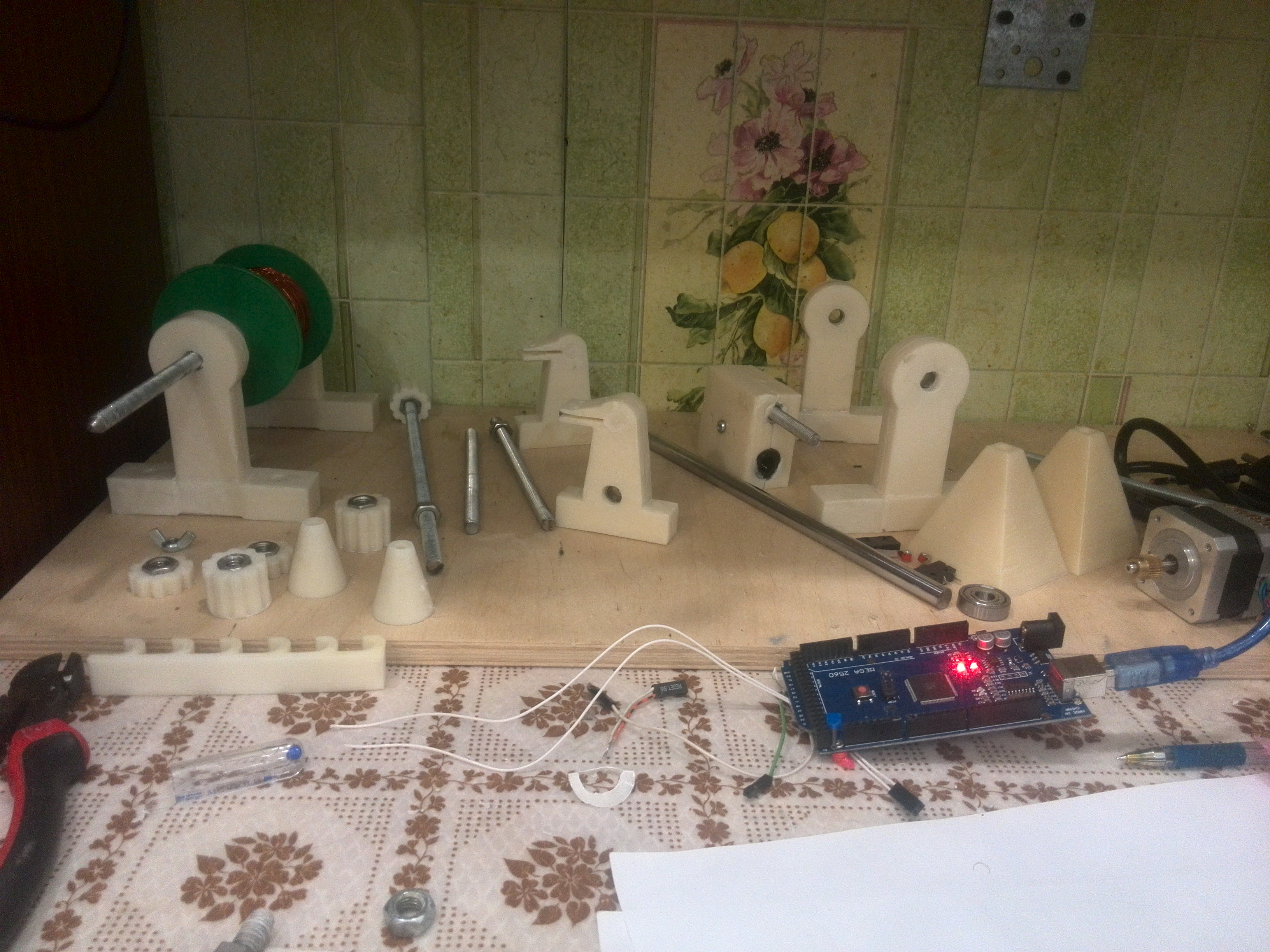 Просто купить трансформатор мне показалось не интересным,короче посмотрев несколько роликов про переделки трансов я принял решение, что для своего устройства я как минимум сам намотаю обмотки. Потом посетила мысль,если делать устройство для решения такой задачи почему бы его не автоматизировать? Пара шаговых двигателей, ардуина мега и горсть концевых выключателей -были в наличии(2й ш бот я так и не собрал).